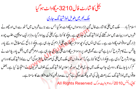 Bijli Ka Short Fall 3210 Mega Watt Ho Gya