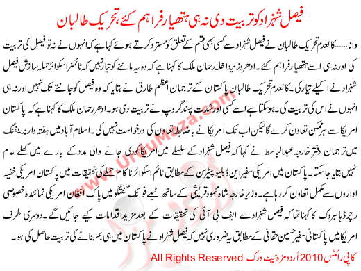 Faisal Shehzad Ko Na Koi Tarbiat Di Or Na He Hathyar Frahm Kiay Taliban