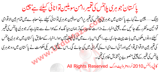 Sharing In Construction Of Nuclear Plants With Pakistan Is For Civil Technology Says China