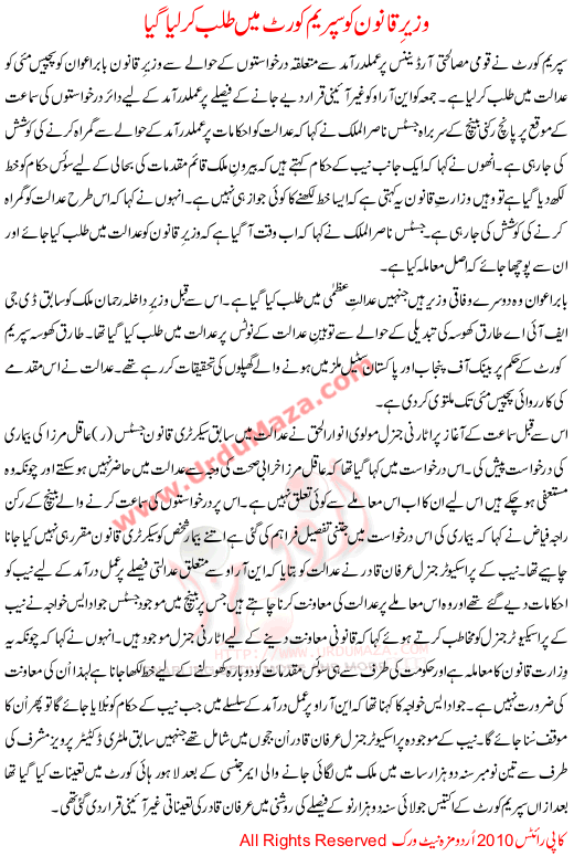 Wazir E Qanoon Ki Supreme Court Ma Talbi
