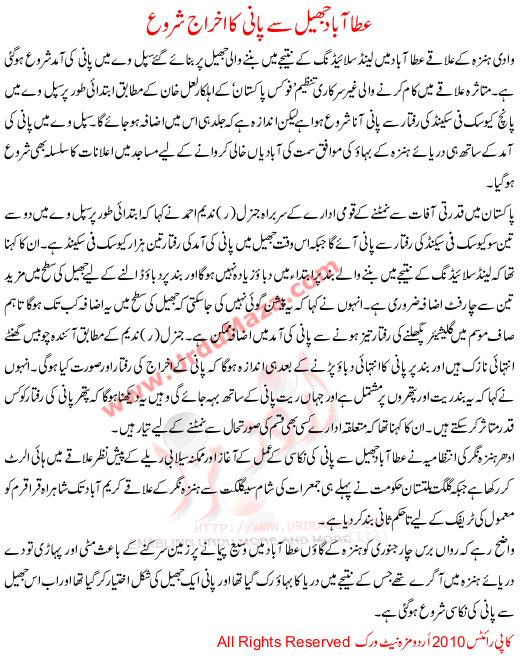Water Starts Flowing From Ata Abad Lake Through Spill Way