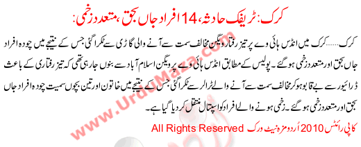 Kurk Trafic Hadsa 14 Afrad Jabhaq