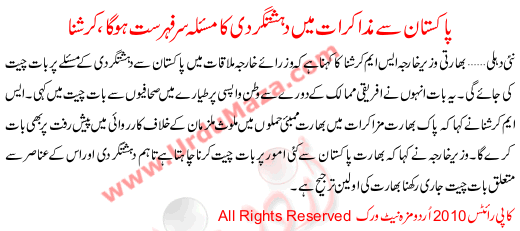 Pakistan Say Muzakrat Me Dehshat Gardi Ka Masla Sar Fehrest Ho Ga