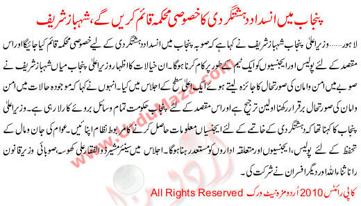 Punjab Ma Insdad E Dehshatgardi Ka Khasoosi Mehkma Qaim Kia Jae Ga Shehbaz Sharif