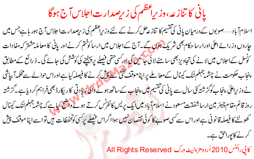 Pani Ka Tnazia Wazere Azam K Zere Sdarat Ajlas Aj Ho Ga