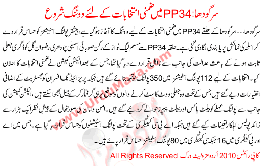 Sargodha Pp34 Ma Zmani Intkhabat K Liay Poling Shuru