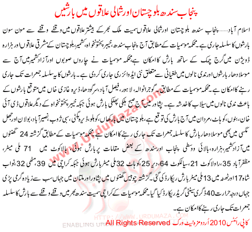 Punjab Sindh Blochistan Or Shmali Ilaqon Ma Barishain