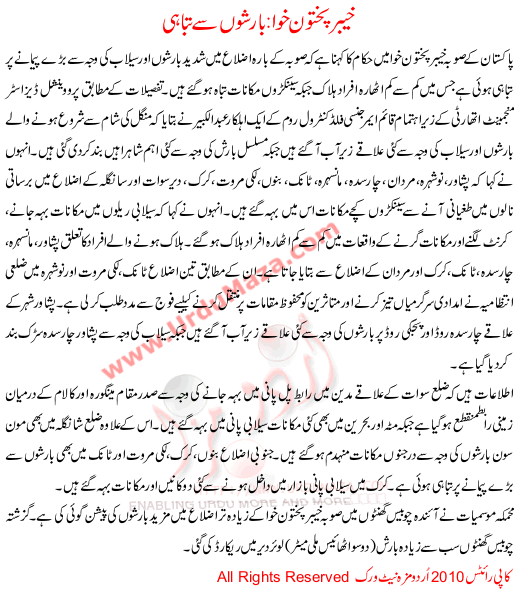 Kheber Pakhtoonkhwah Barishon Sa Tabahi