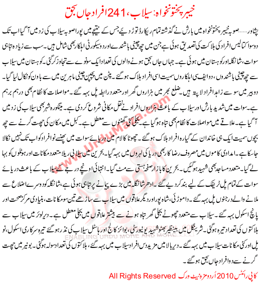 Khaber Pakhtoon Kha Selab Me 241 Afrad Jabhaq