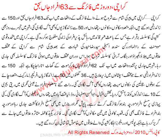 Karachi 2 Roza Firing Sa 63 Afrad Janbahaq