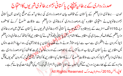 Sadar Zardari K Bartania Pohnchnay Pr Pakistani Niyad Bartanvi Shehrion Ka Ihtjaj