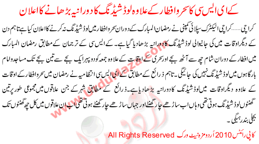 Kesc Ka Loadsheding Ka Doraniya Barhanay Ka Ilan