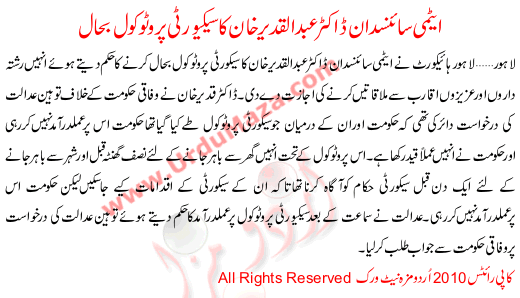 Doctot Abd Ul Qadeer Ka Protokol Bahal