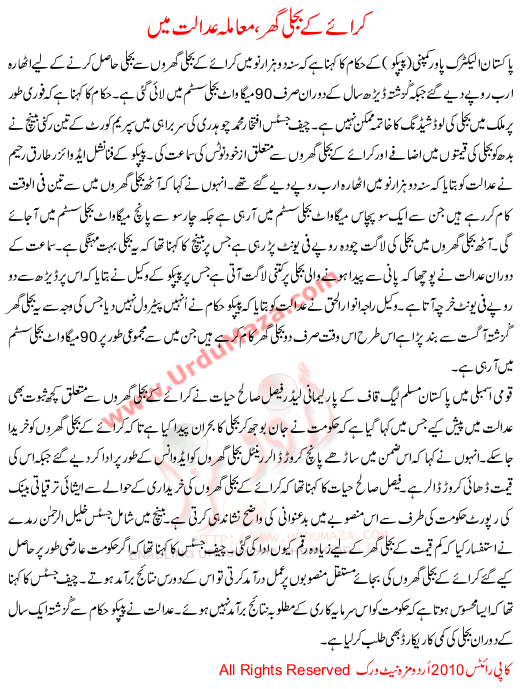 Karaye K Bijli Ghar Muamla Adalat Ma