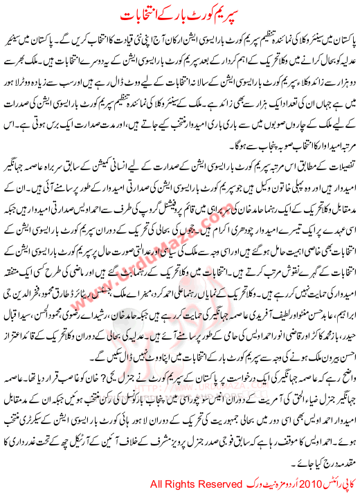 Supreme Court Bar K Intkhabat