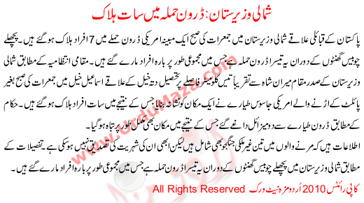 Shmali Wazirstan Drone Hamla Ma 7 Halak