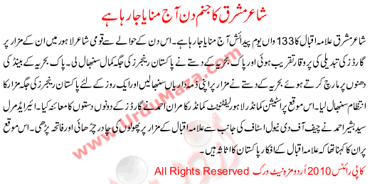 Shair E Mashriq Ka Janam Din Aj Manaya Ja Rha Ha