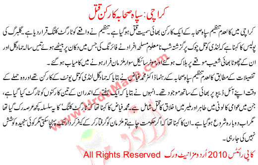 Karachi Sapah Sahabah Ka Rukan Qatal