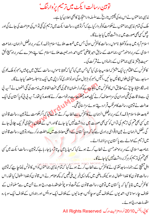 Toheen Rasalat Act Me Tarmeem Per Warning