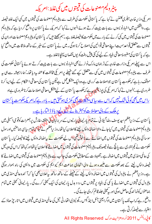 Petrolium Masnooat Ki Qeemton Ma Kami Ghalat Amrica
