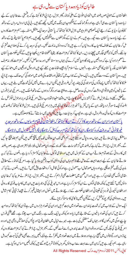 Talban Ko Zyada Madad Pakistan Say Mil Rahi Hai