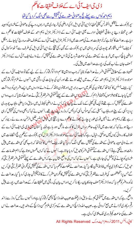 Dg Fia K Khilaf Tehqeeqat Ka Hukam