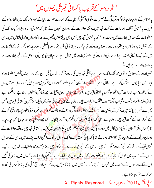 1800 K Qareeb Pakistani Ghair Mulki Jailon Ma