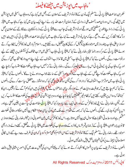 Punjab Ma Oposition Ma Bethnay Ka Fesla