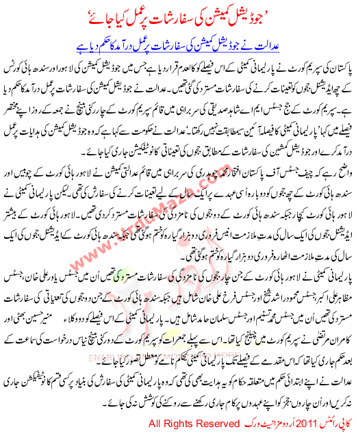 Juditional Commition Ki Sifarshat Pr Amal Kiya Jaye