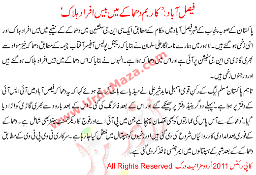 Faisalabad Car Bum Dhmakay Ma 20 Afraad Halak