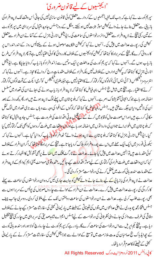 Agencion K Liay Qanoon Zaroori