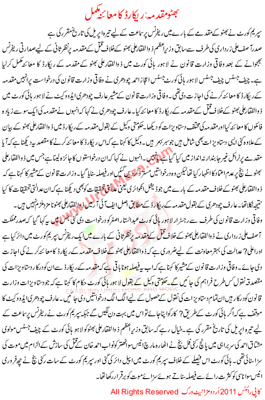 Bhuto Muqadma Record Ka Moaina Mukamal