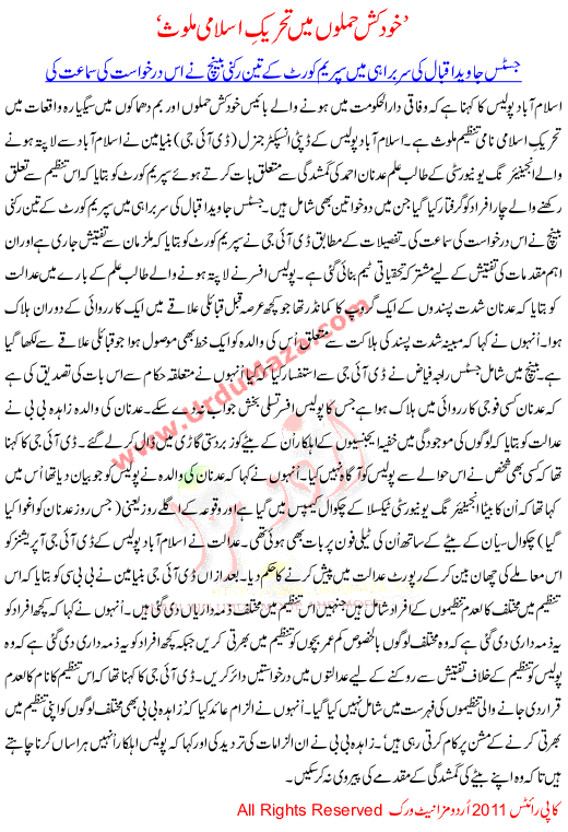 Khudkush Hamlon Ma Tehreek Islami Mulavas