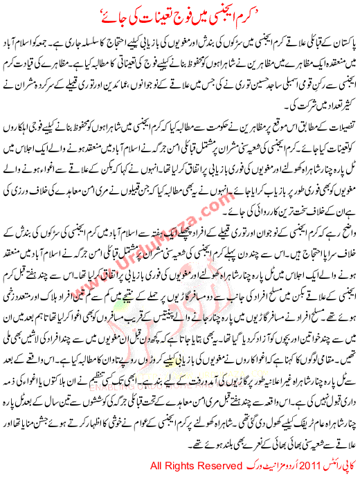 Karam Agency Ma Fauj Tainaat Ki Jaye