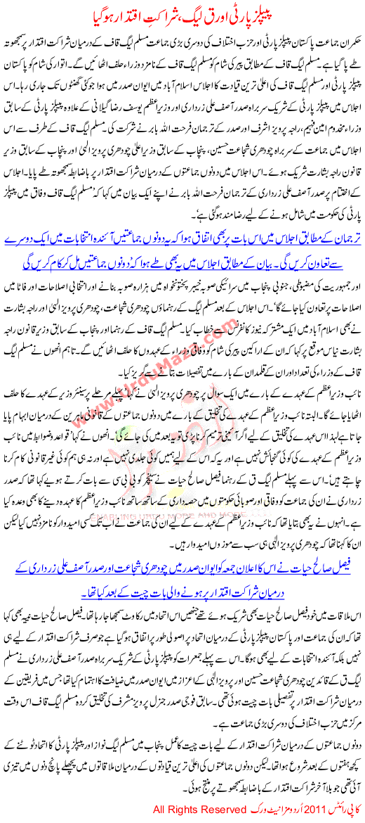 Peoples Party Or Q Leadge Sharakat E Iqtdar Ho Gya