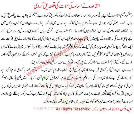 Al Qaida Na Osama Ki Moot Ki Tasdeeq Kr Di