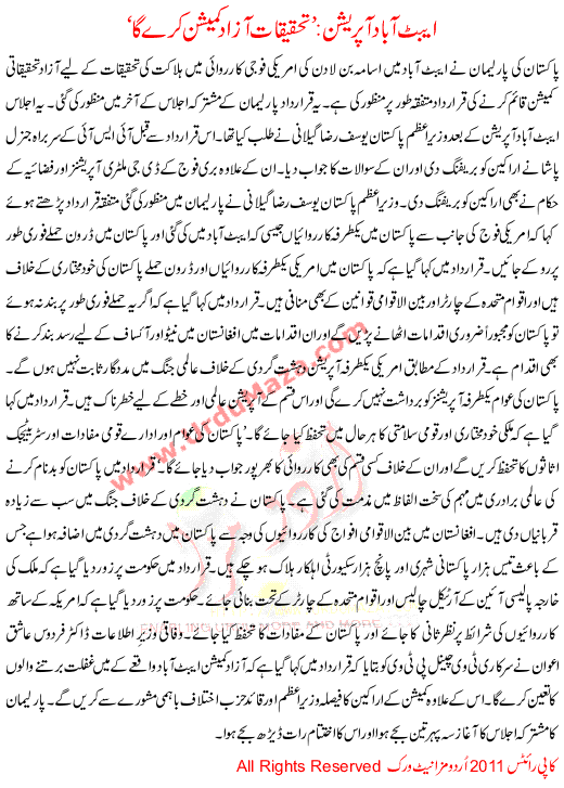 Abtabad Operation Tehqeeqat Azad Commision Karay Ga