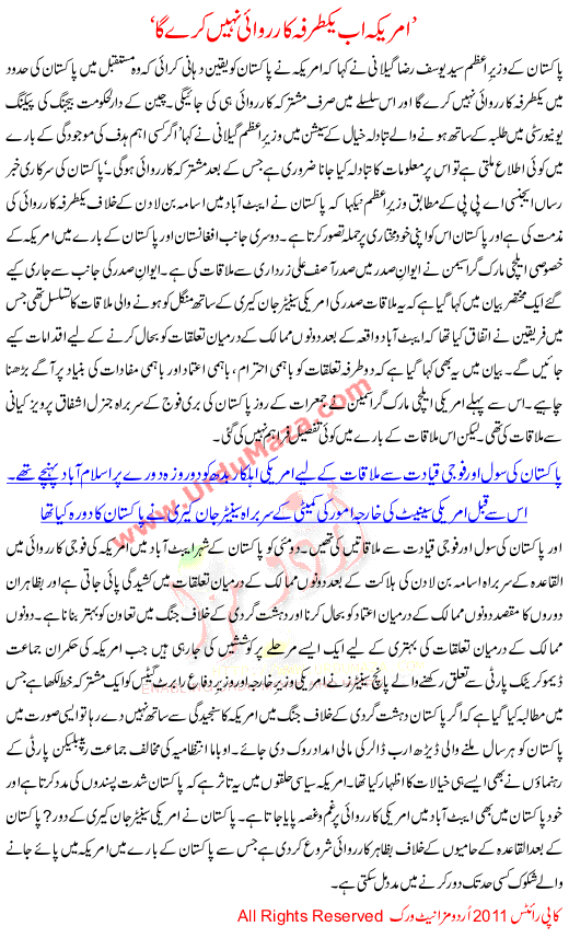 Amrica Ab Yaktarfa Karwai Ni Karay Ga
