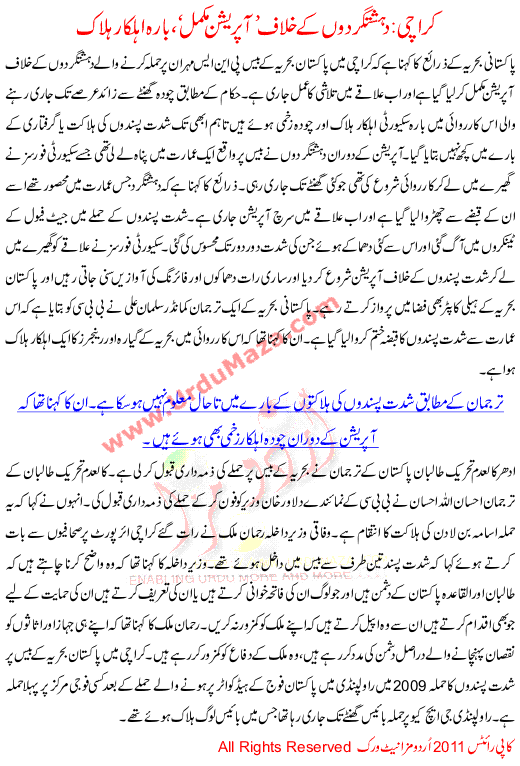 Karachi Dehshatgardon K Khilaaf Operation Mukamal