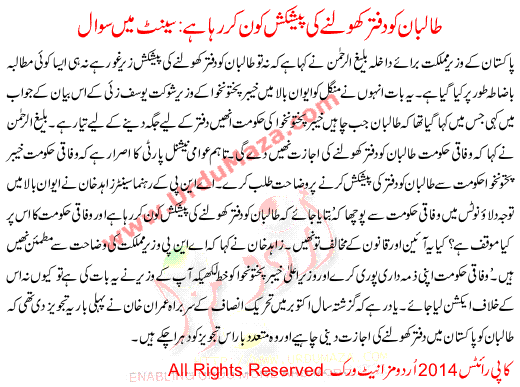 Who Is Offering The Taliban To Open An Office Question In Senets