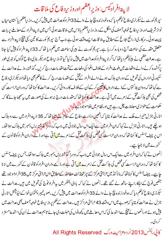 Wazere E Aazem Or Wazer E Dafa Ki Mulaqat Missing Persons Case