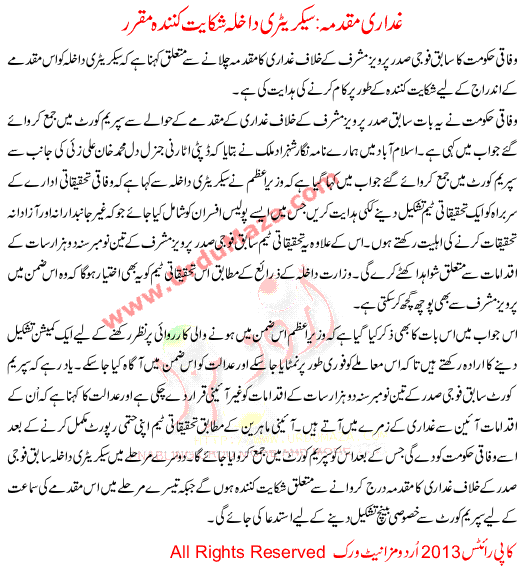 Federal Investigation Agency (fia) Has Submitted A Challan In The Anti-terrorism Court Against Pavaiz Musharaf