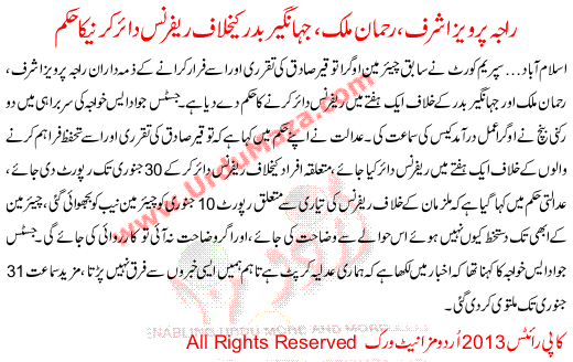 Raja Parwez Ashraf Rehman Malik Or Jahangir Badar K Khilaf Referance Daire Karne Ka Hukam