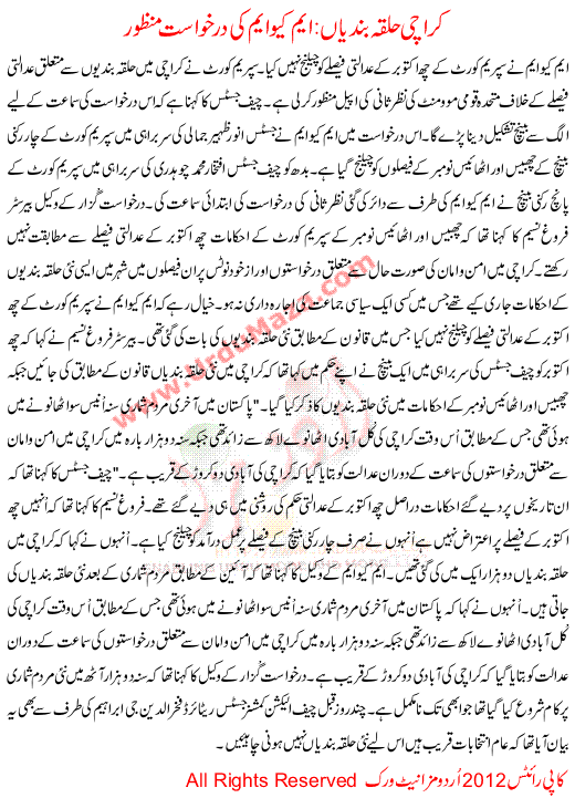 Karachi Halqa Bandya Mqm Ki Darkhwast Manzoor