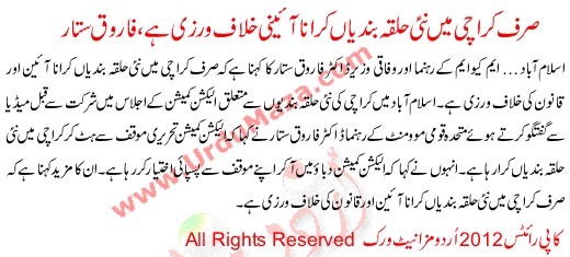 Karachi Me Halqa Bandya Aien K Khilaf Hai Farooq Star