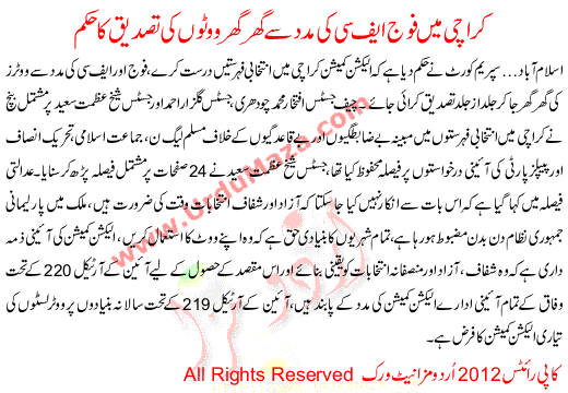Karachi Me Foj Fc Ki Madad Se Ghar Ghar Voto Ki Tasdeeq Kare