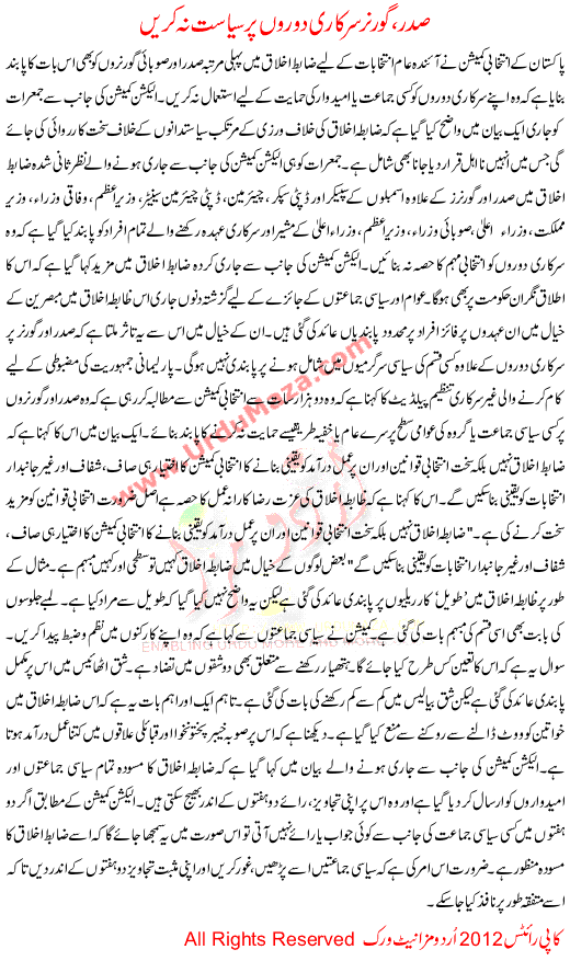 Sadar Governer Sarkari Doro Per Syasat Na Kare
