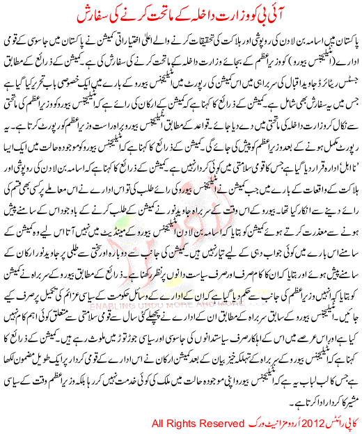 Ib Ko Wazarat E Dakhla K Matehet Karnay Ki Sifarish
