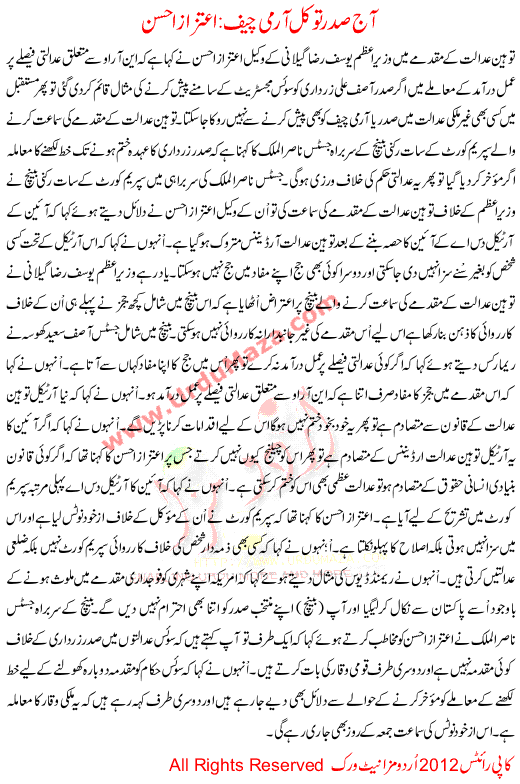 Aj Sadar To Kal Army Chief Aitzaz Ahsan