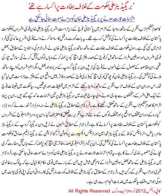 Bargedier Ali Hakoomat K Khilaaf Baghawat Pr Uksa Rhay Thay